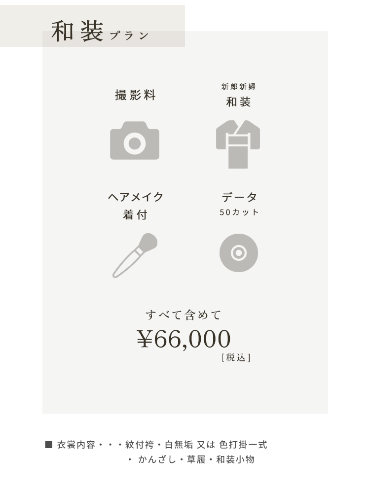 プランに欠かせない衣裳とヘアメイク着付けとデータ